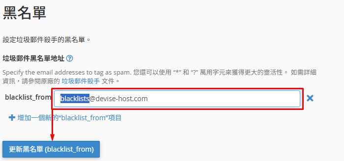 輸入欲加入的【黑名單信箱】,送出(更新黑名單)即完成設定。